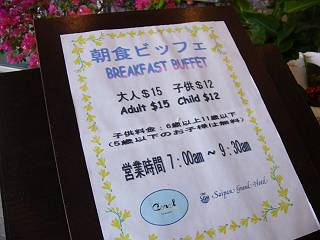 こちらが朝食メニュー。(写真をクリックすると拡大画面が開きます) |