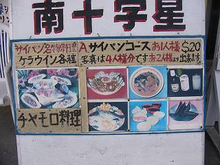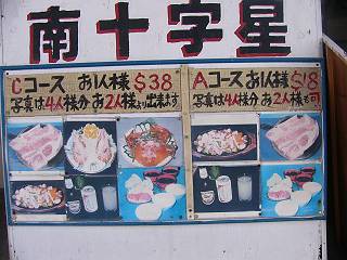 | 南十字星はワールドリゾートホテルの前にあります。 ステーキを始めチャモロ料理、チャモロ風鍋等、様々な料理があります。 店の前に行くと、マスターが迎えてくれます。 |