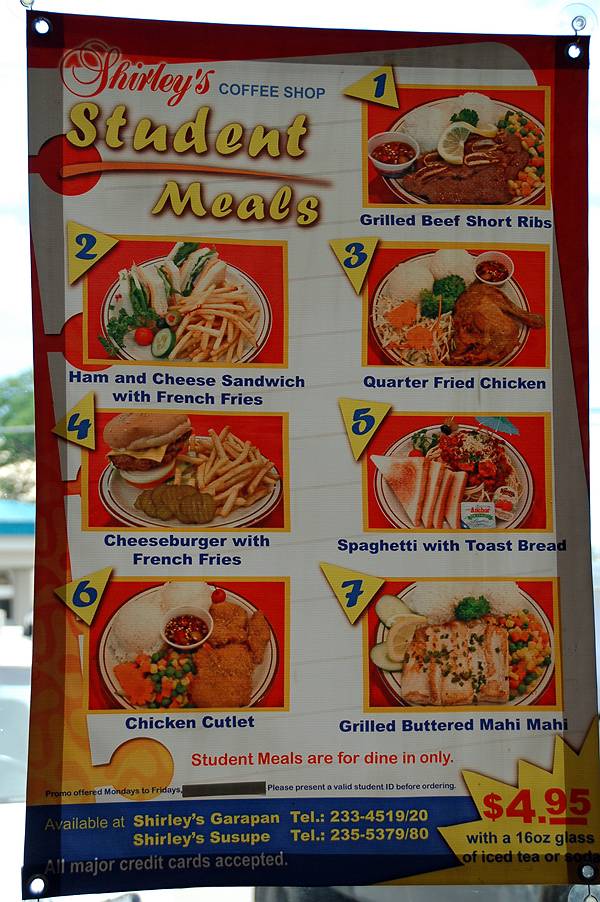学生用メニューもありました。$4.95でこのボリューム。すごいです・・・。 |