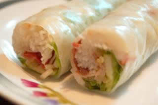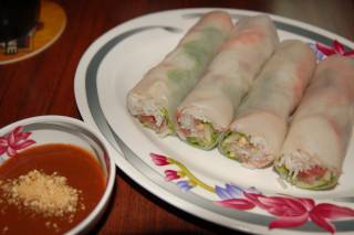 こちらは生春巻き。これはとてもオススメです♪ 甘めのソースにつけて食べます。 |