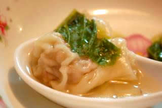 これはワンタンスープ。ひとつひとつに言えますが、どれも量が多いです・・・。 |
