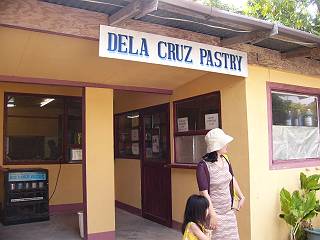 | お店の入り口です。 場所はグランドホテルの前にあるドーナツショップ「ウィンチェルズ」の裏手あたりに位置します。車で行く場合、回り込んで行かなければならず、グランドホテルからタウンハウス方面に少し走って「MUSIC AND」というCDショップの手前を左に曲がり、まっすぐ行った突き当りを左に曲がると「DELA CRUZ PASTRY」の大きな看板が見えます。 |