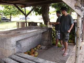 | ここでヤシの実をさばいているようです。 | ||