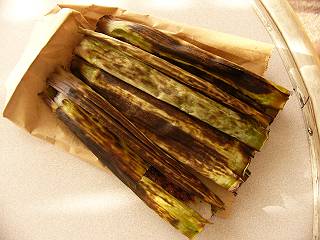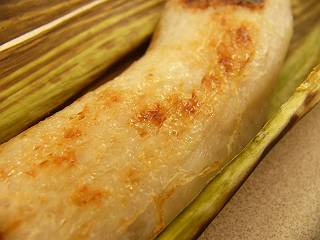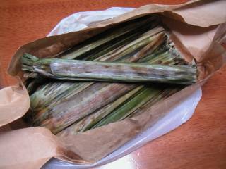 アピギギ はチャモロの伝統的なお菓子です。 若いヤシの実とタピオカ(でん粉)、砂糖、水を加えて練ると、餅状になり、それをバナナの葉に包んで焼いたものです。 ヤシの実が入っているので、ほんのりココナッツの香りがしつつ甘いので、大抵の子供(大人を含め・・・)がはまってしまいます。 お土産に持って帰れますが、やはり焼きたてが一番美味しいです。 ここでは1個=¢75 でした。 |