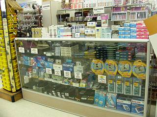 | 忘れてはいけないのがこちらのコーナー。デジカム用DVテープやデジカメ用メモリーカードが置いてあります。いざというときには便りになります。 | ||