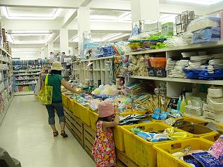 場所はプライスコスコ入り口の道路反対側です。 ジョーテン系のスーパーでは売っていないもの(雑貨等)が入手できます。 管理人が行った時(2004.9)はまだ食料品が残っていましたが、現在は無いようです。 |