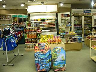 食品,お土産用雑貨,衣料品(Tシャツ)等が置いてあります。 一定の金額を超えるとホテルまで無料配送してくれます。 |