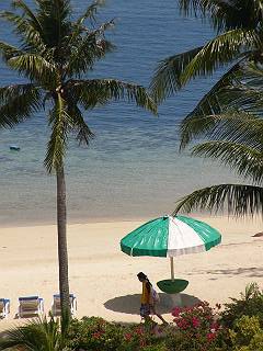 誰もいない貸しきり状態の「オブジャンビーチ」。ダイビングによく使われるそうです。 |