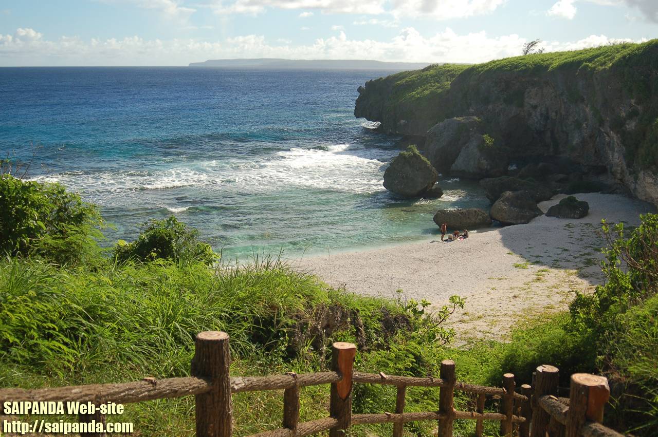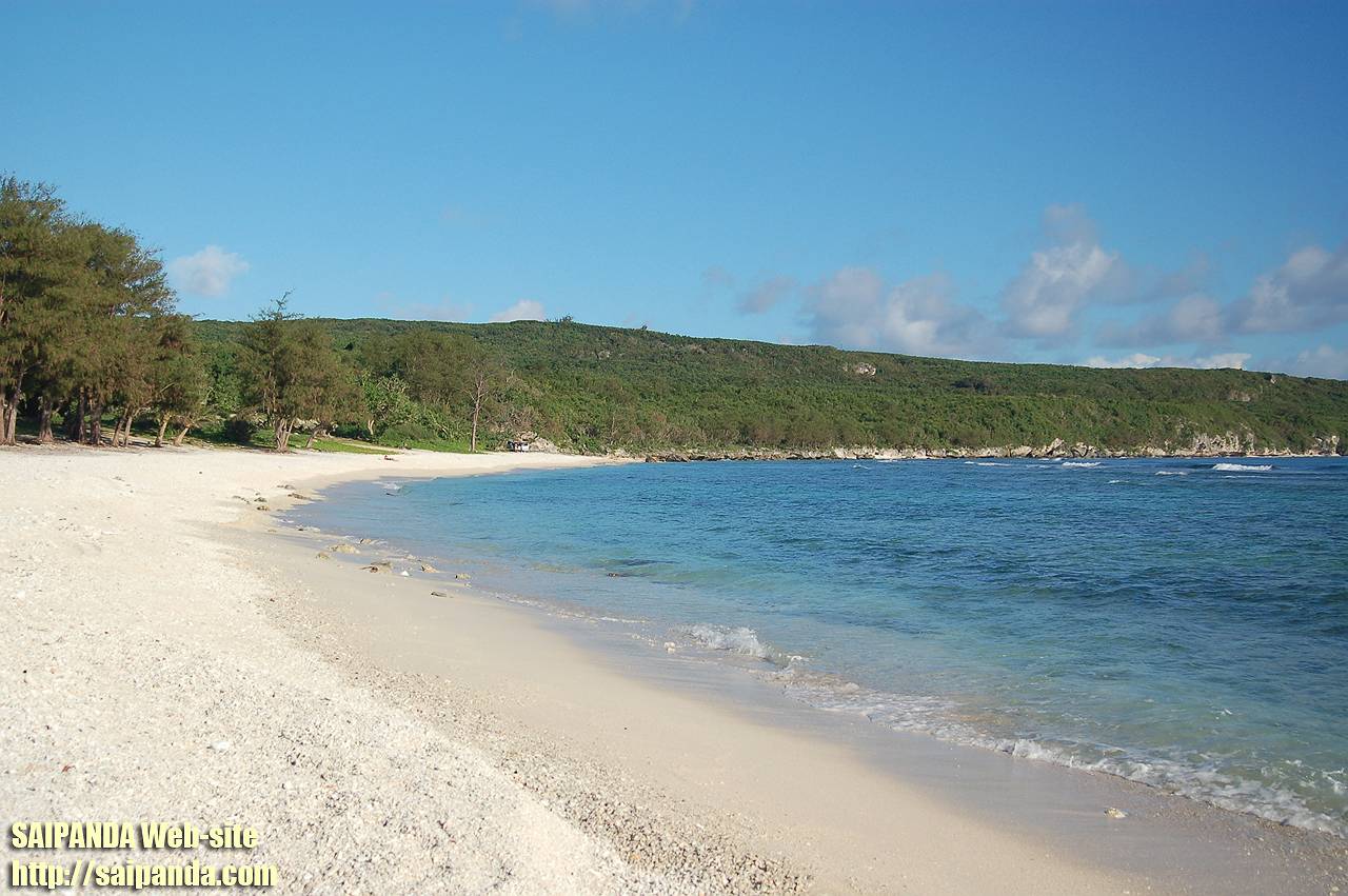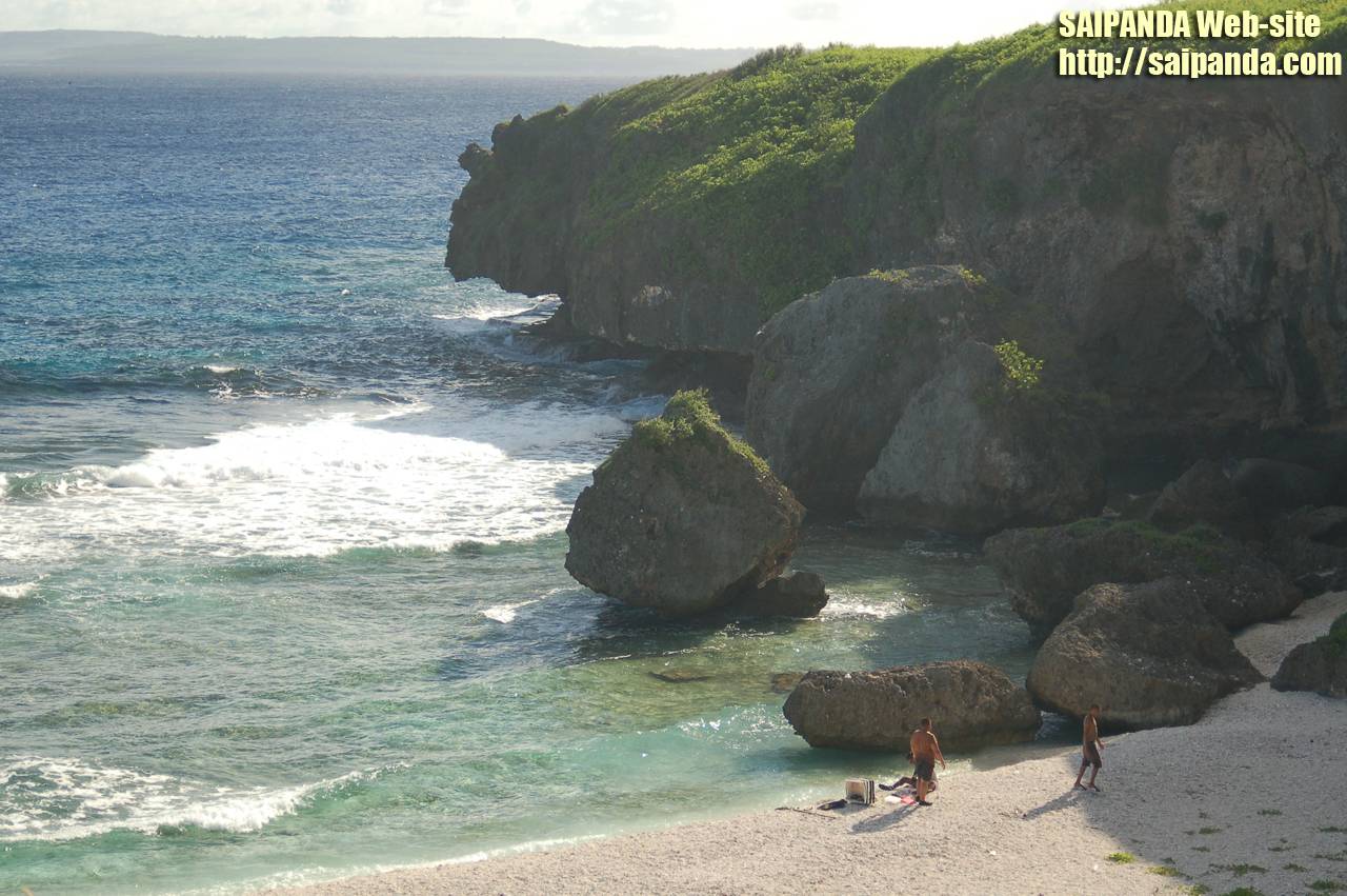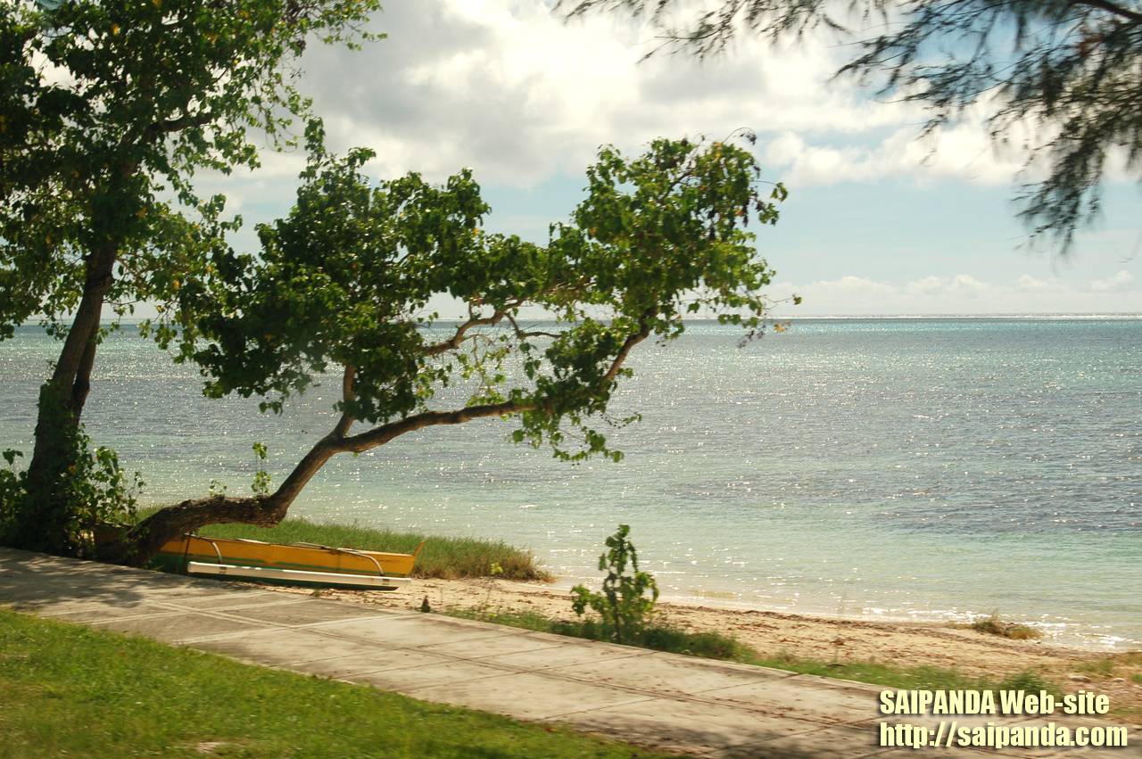 サイパン南部(空港近く)にあるラダービーチです。ローカルの人たちがが釣りをしていました。 |